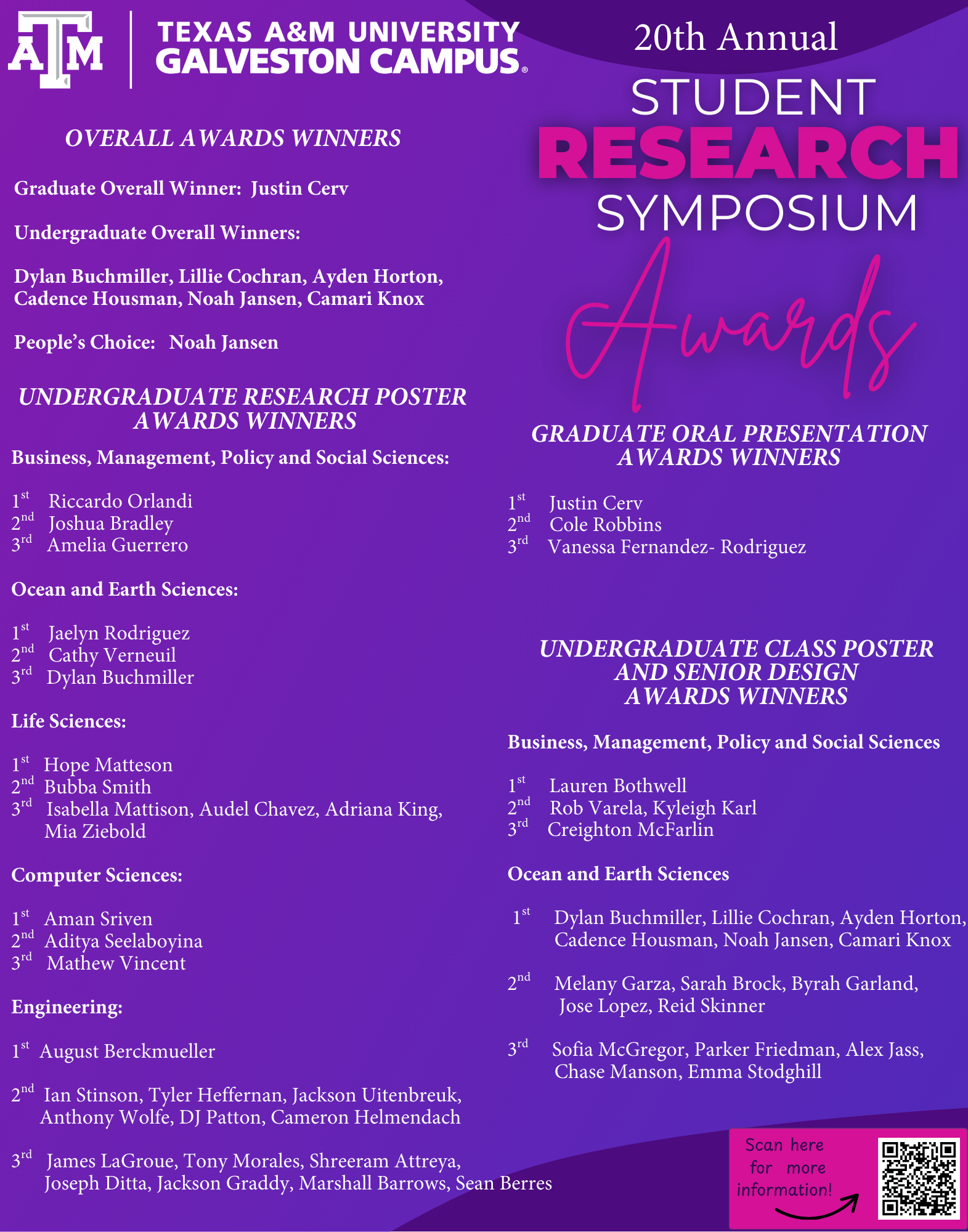 April 18, 2025: 20th Annual TAMUG Student Research Symposium- Congratulations to all of the winners!